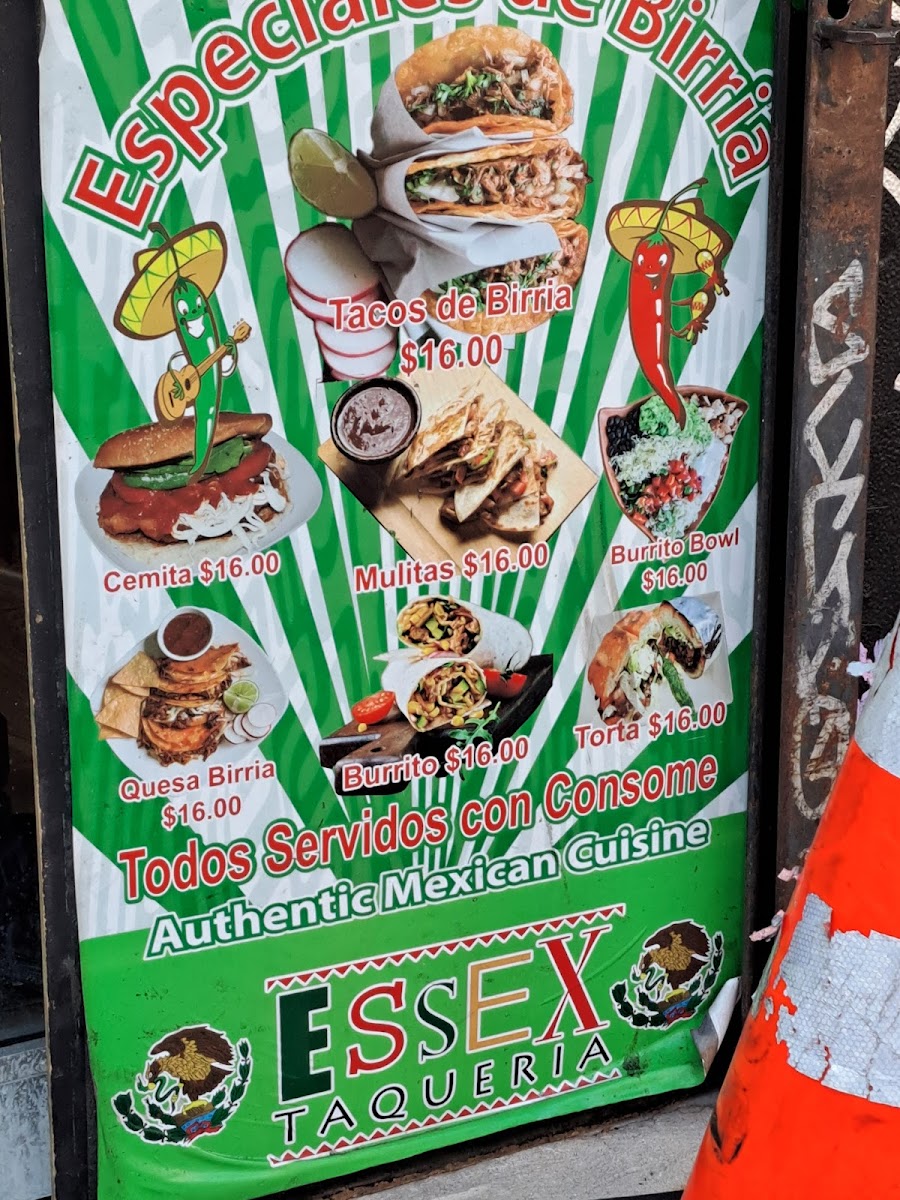 Introducing the menu at Essex Taqueria, a hidden gem located at 123 Essex St, New York, NY. This quaint eatery is celebrated for its street tacos that capture the essence of authentic Mexican flavors. Customers rave about the standout steak tacos, praised for their unbeatable taste and generous fillings. The pork Al Pastor torta is a culinary masterpiece, marrying tender marinated pork with creamy cheese and smooth avocado, creating a delightful symphony of flavors. Additionally, the spicy chicken and shrimp tacos transport diners back to Mexico City with their bold and delicious profiles.